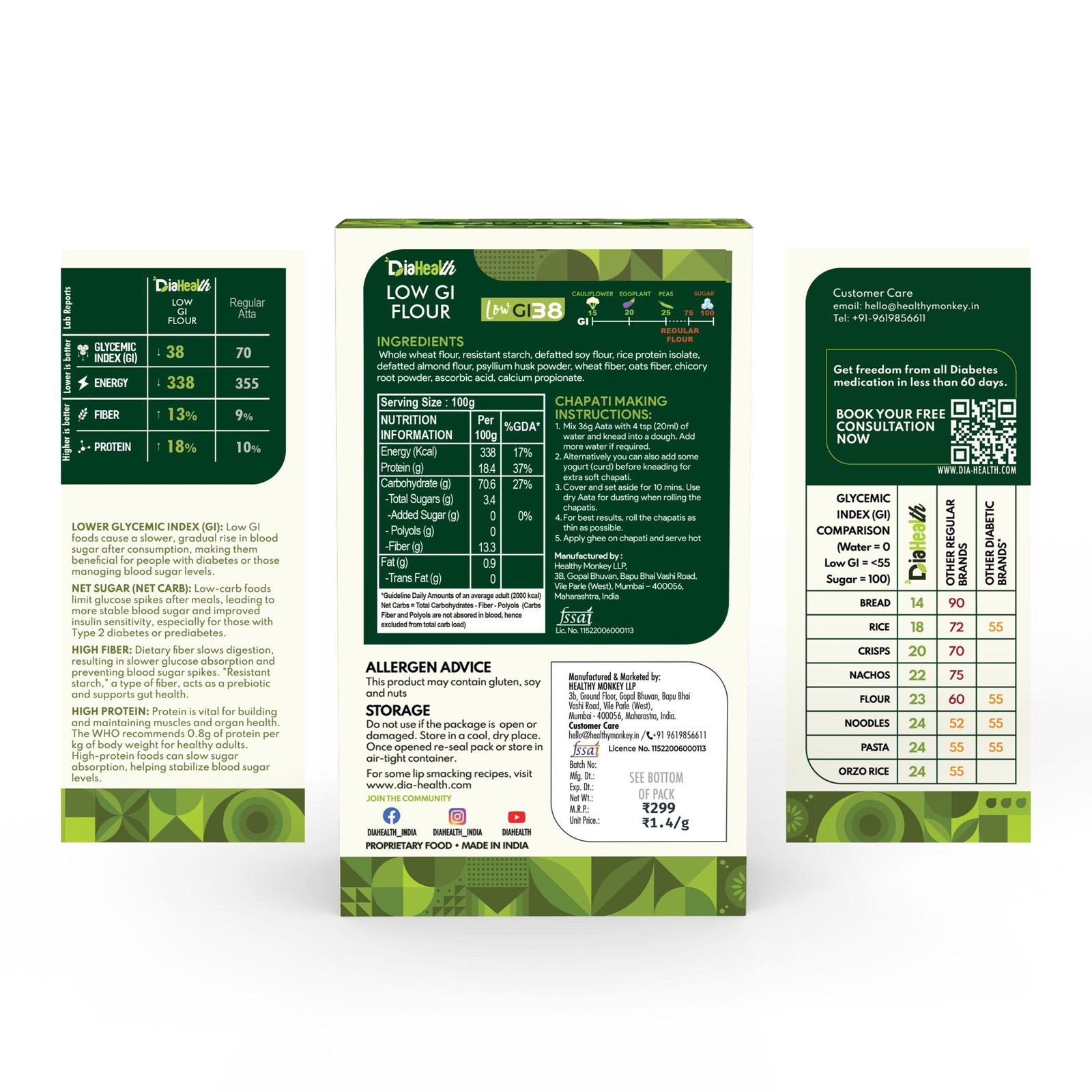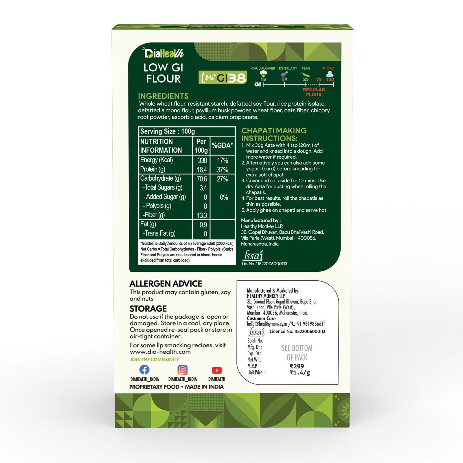 - Versatile & Delicious: Diahealth Sugar Control Low GI Atta is a versatile alternative to wheat flour, perfect for making chapati, paratha, poori, and even baked goods like cookies and bread. Its identical taste ensures a fun, guilt-free eating experience for everyone in the family.