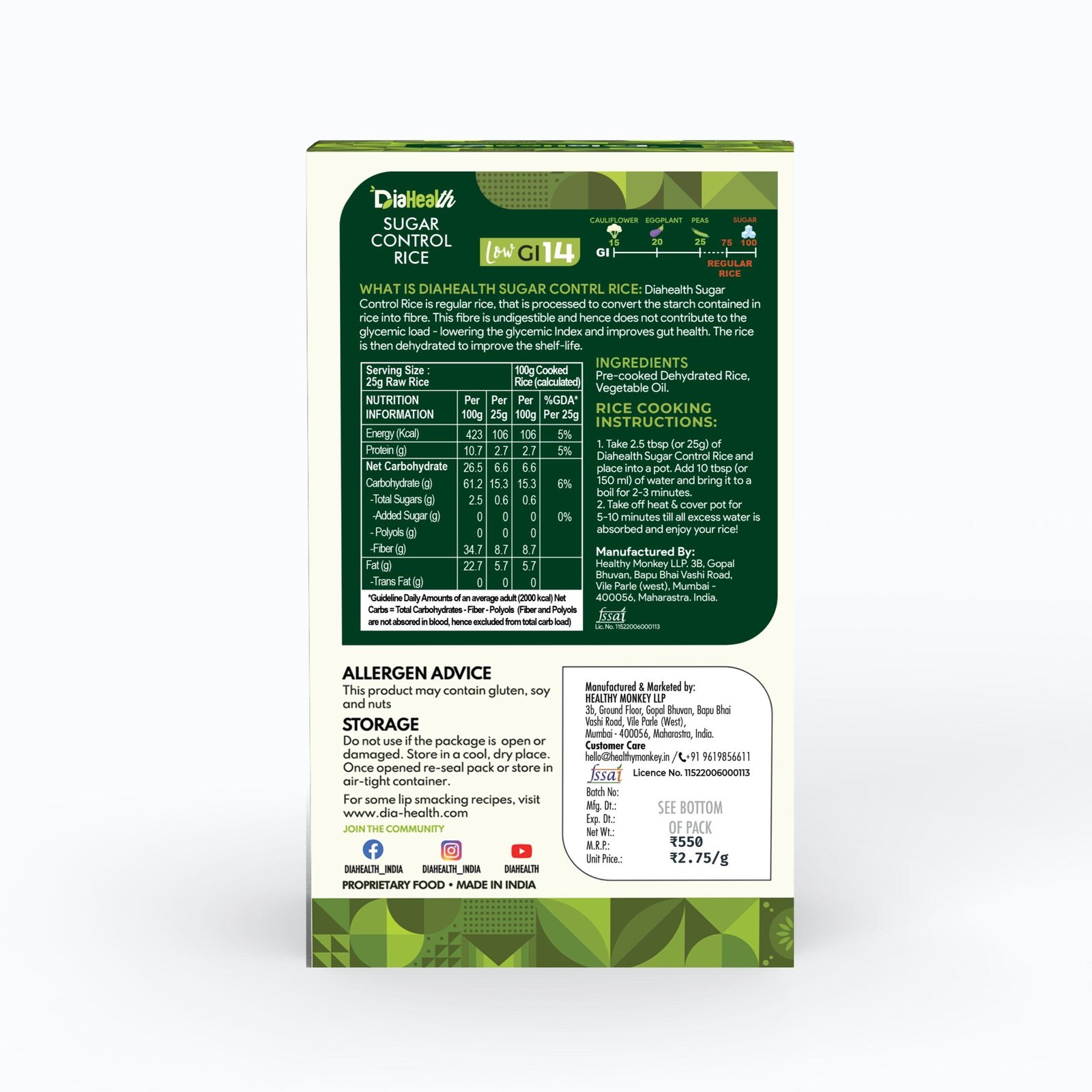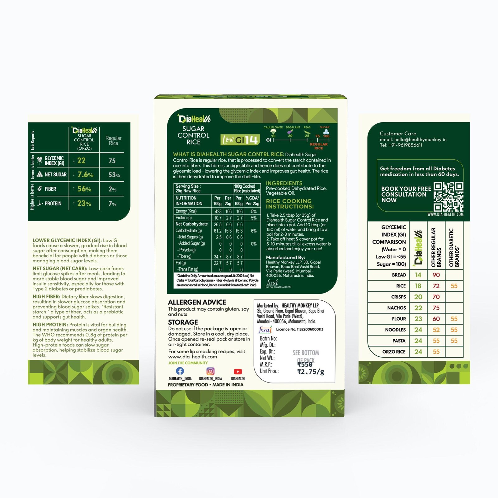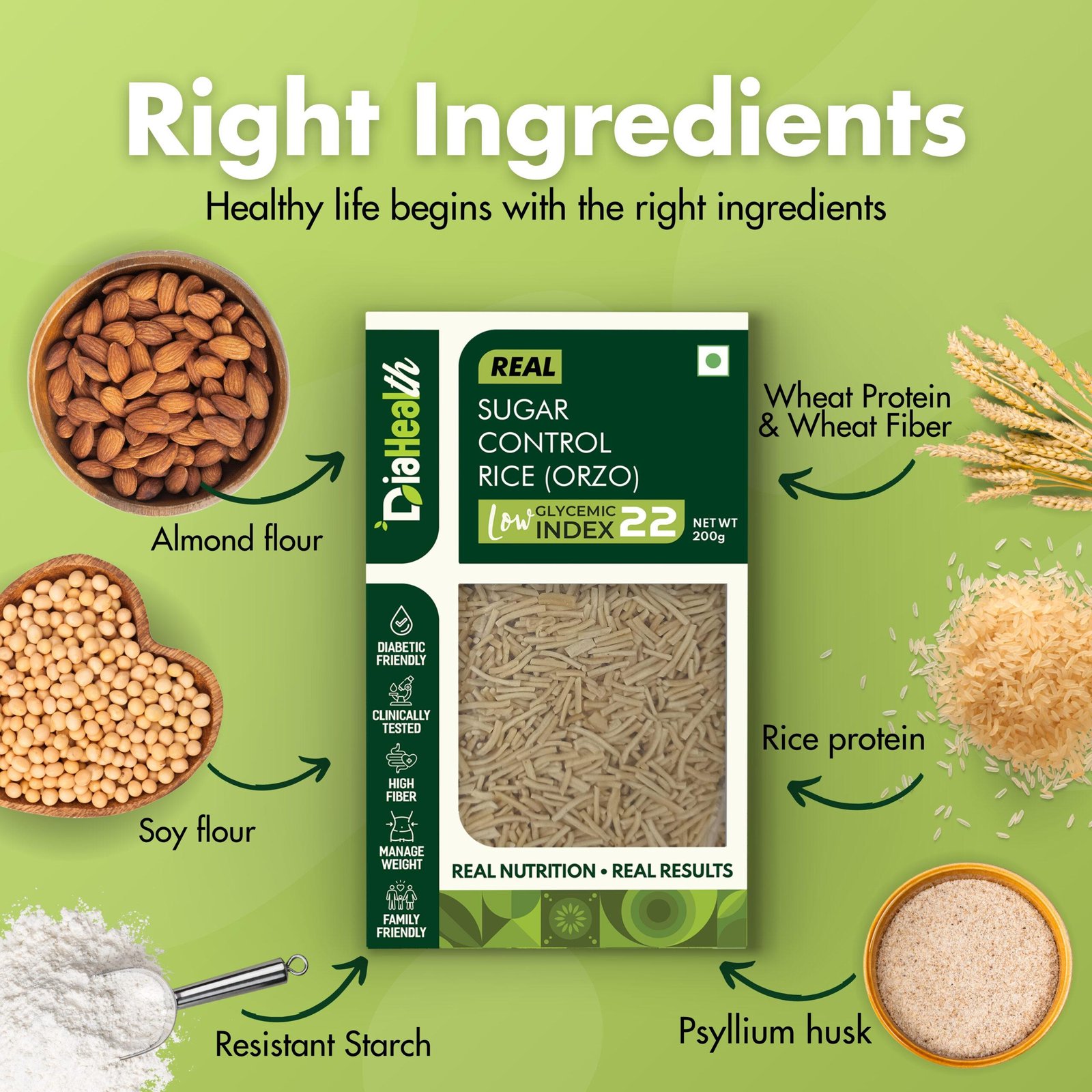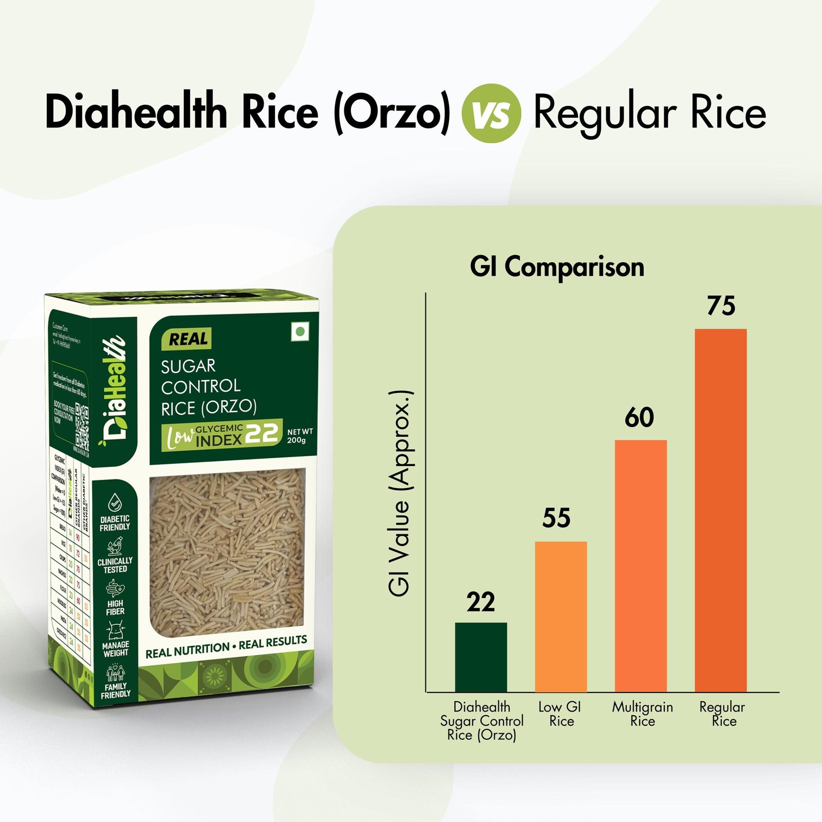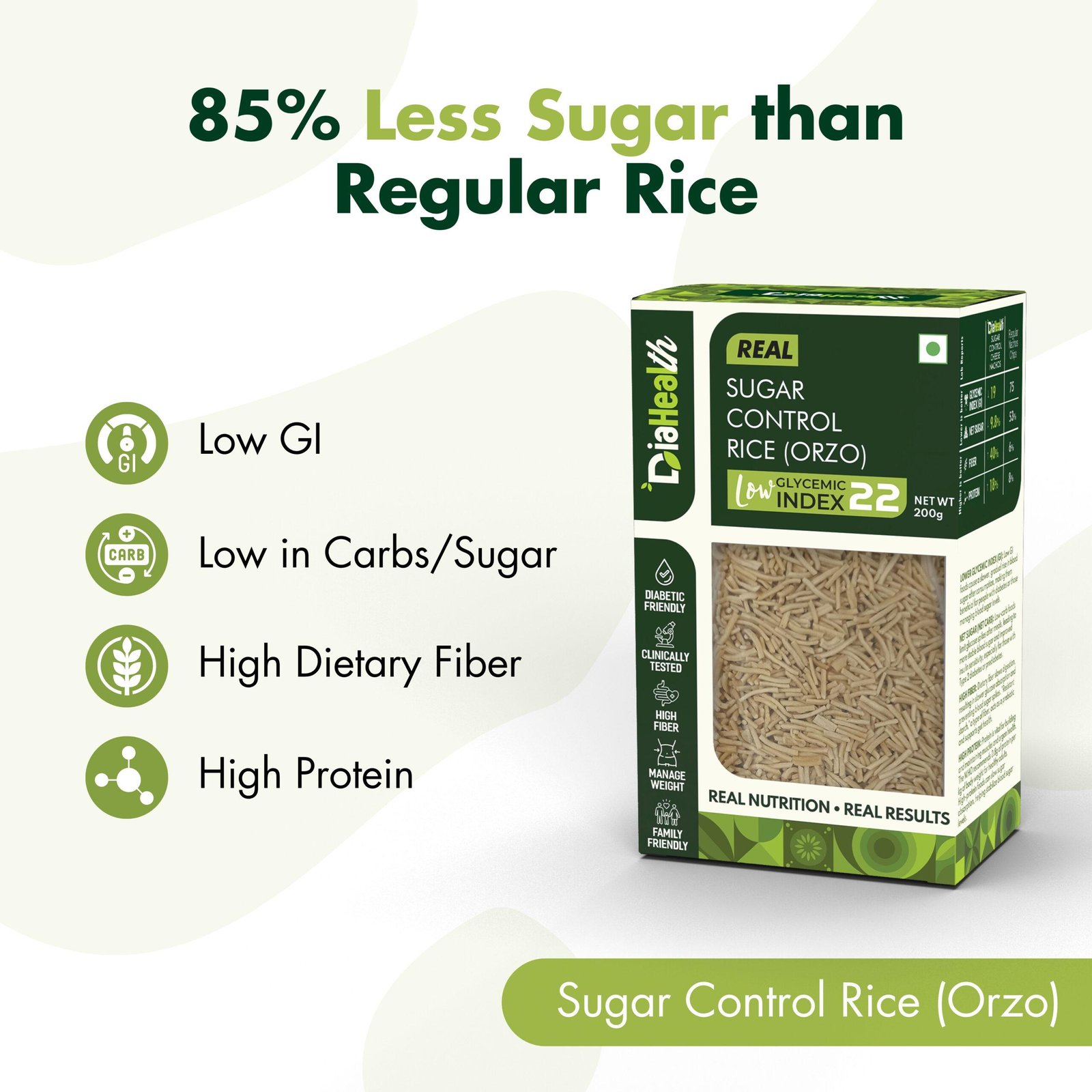 - DIABETIC-FRIENDLY & LOW GLYCEMIC INDEX: With a glycemic index of just 22, Diahealth Sugar Control Rice (Orzo) is ideal for diabetics and pre-diabetics. It supports stable blood sugar levels, making it a must-have for those following Low GI or low-calorie diets without compromising on taste.